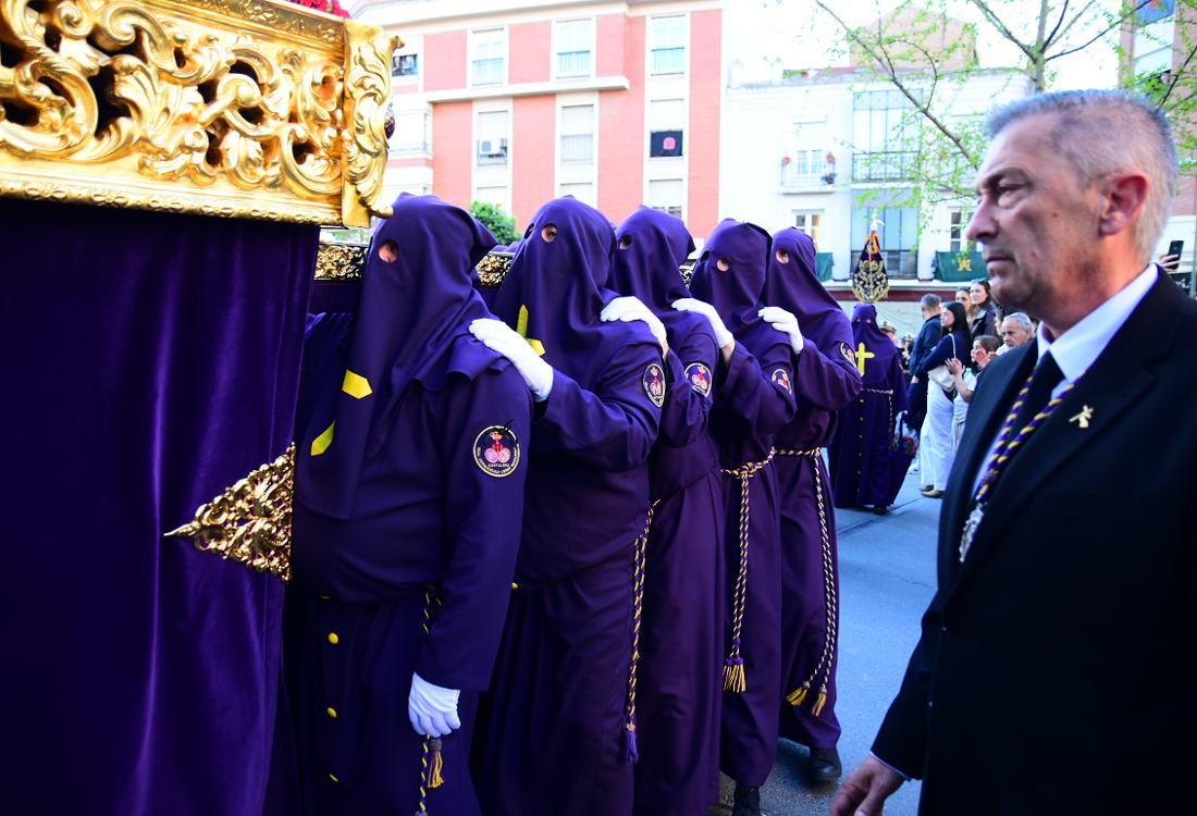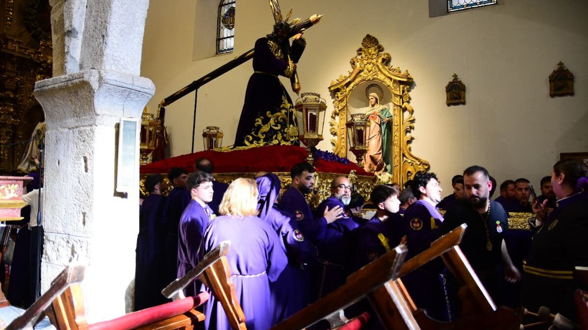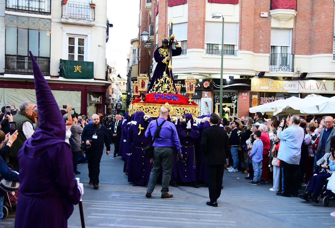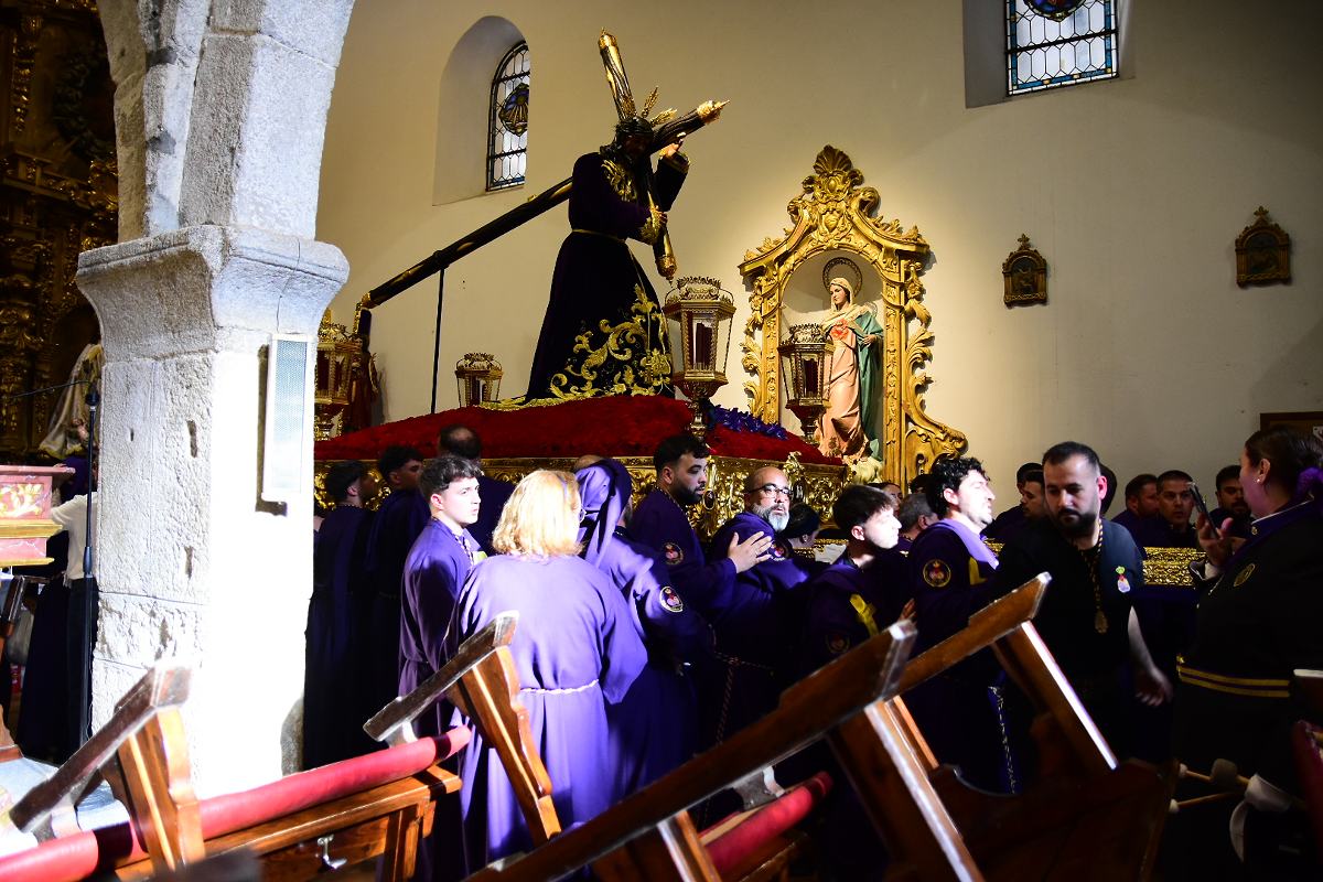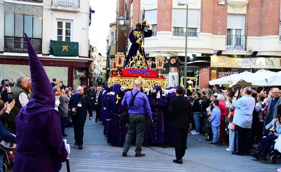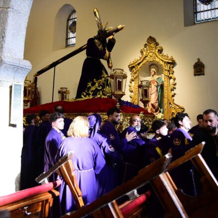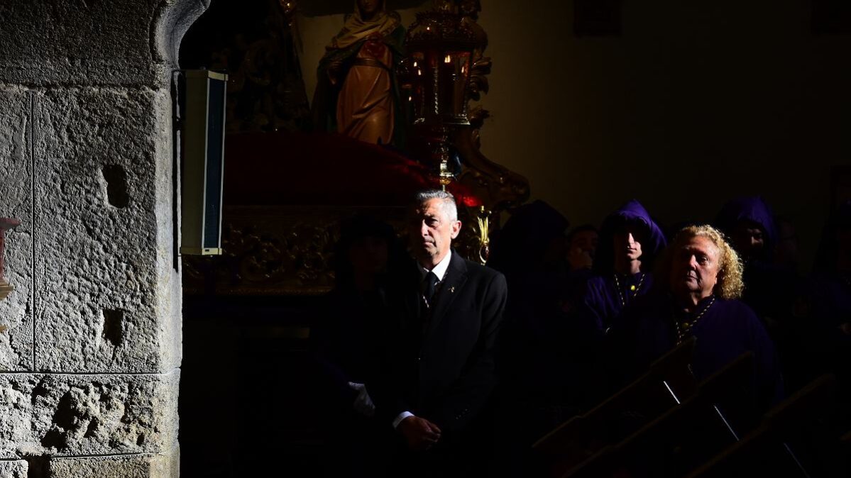 El Nazareno salía a las 7 de la tarde por la puerta de su templo, la iglesia de Santiago en el centro histórico de la Ciudad. Es una de las imágenes más veneradas en la procesión del Santo Entierro del Viernes Santo en Talavera. Fotos: Ángel Centellas
