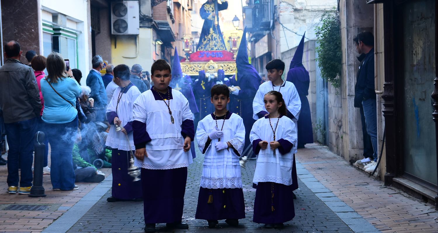 Portada » Fotogalería » Fotos | Penitentes, devotos y curiosos siguen al Nazareno el Viernes Santo en Talavera