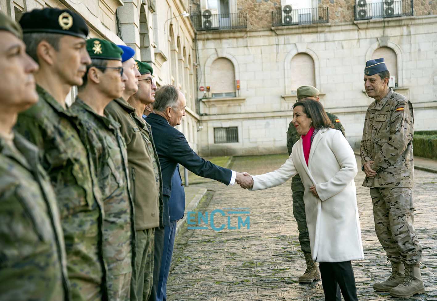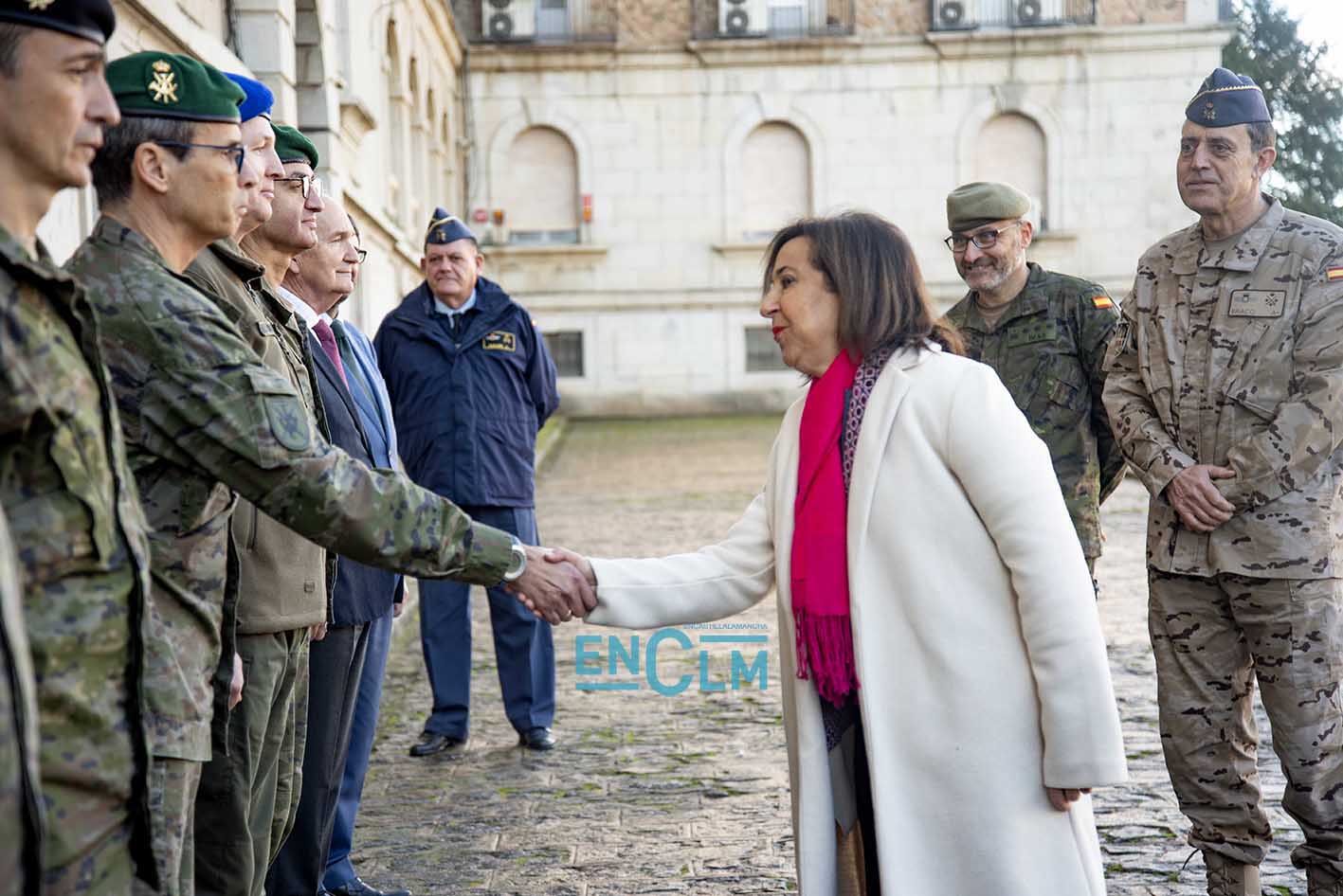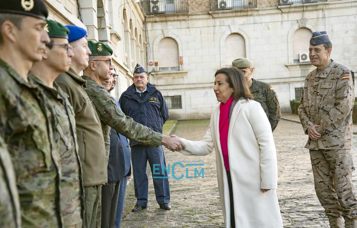 - Robles saludando a mandos militares en la Academia de Infantería de Toledo. Foto: Rebeca Arango.