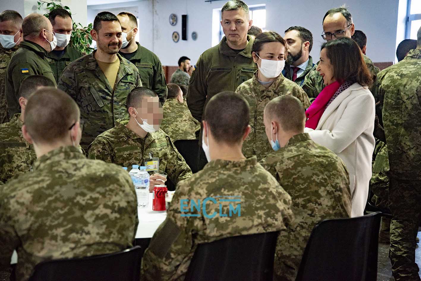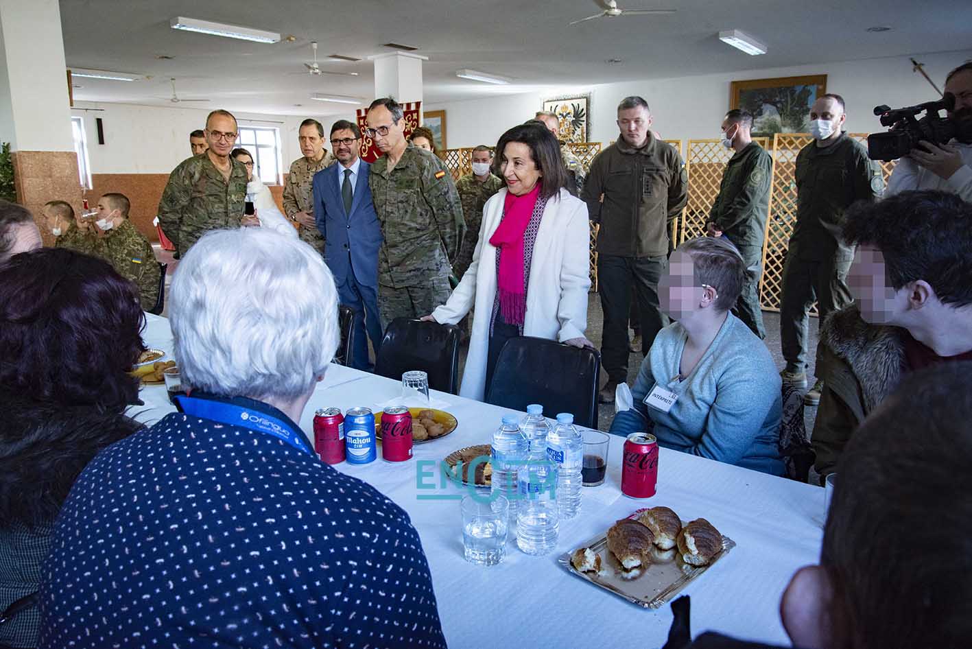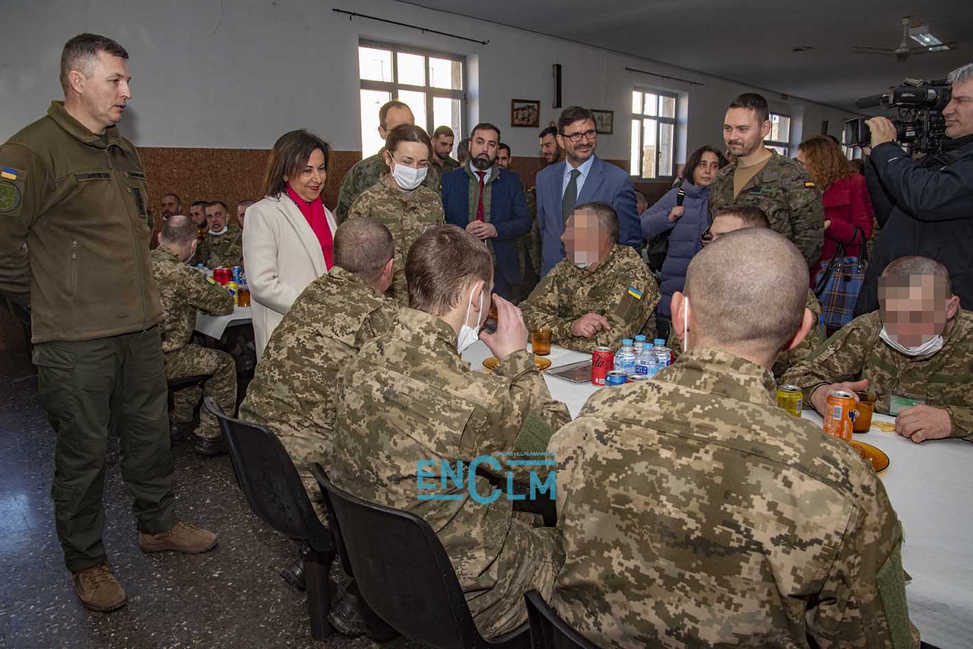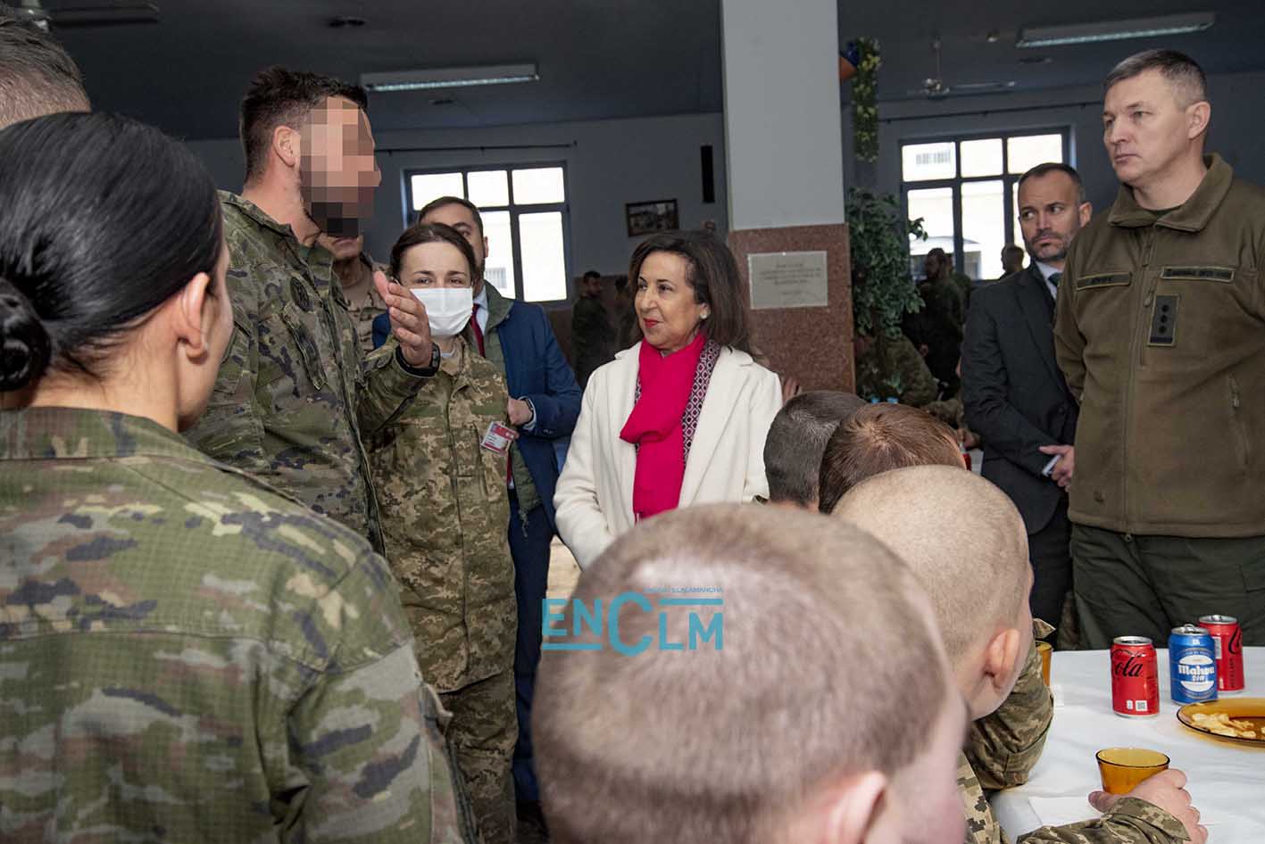 - Margarita Robles, ministra de Defensa, junto a una militar ucraniana en la Academia de Infantería de Toledo. Foto: Rebeca Arango.