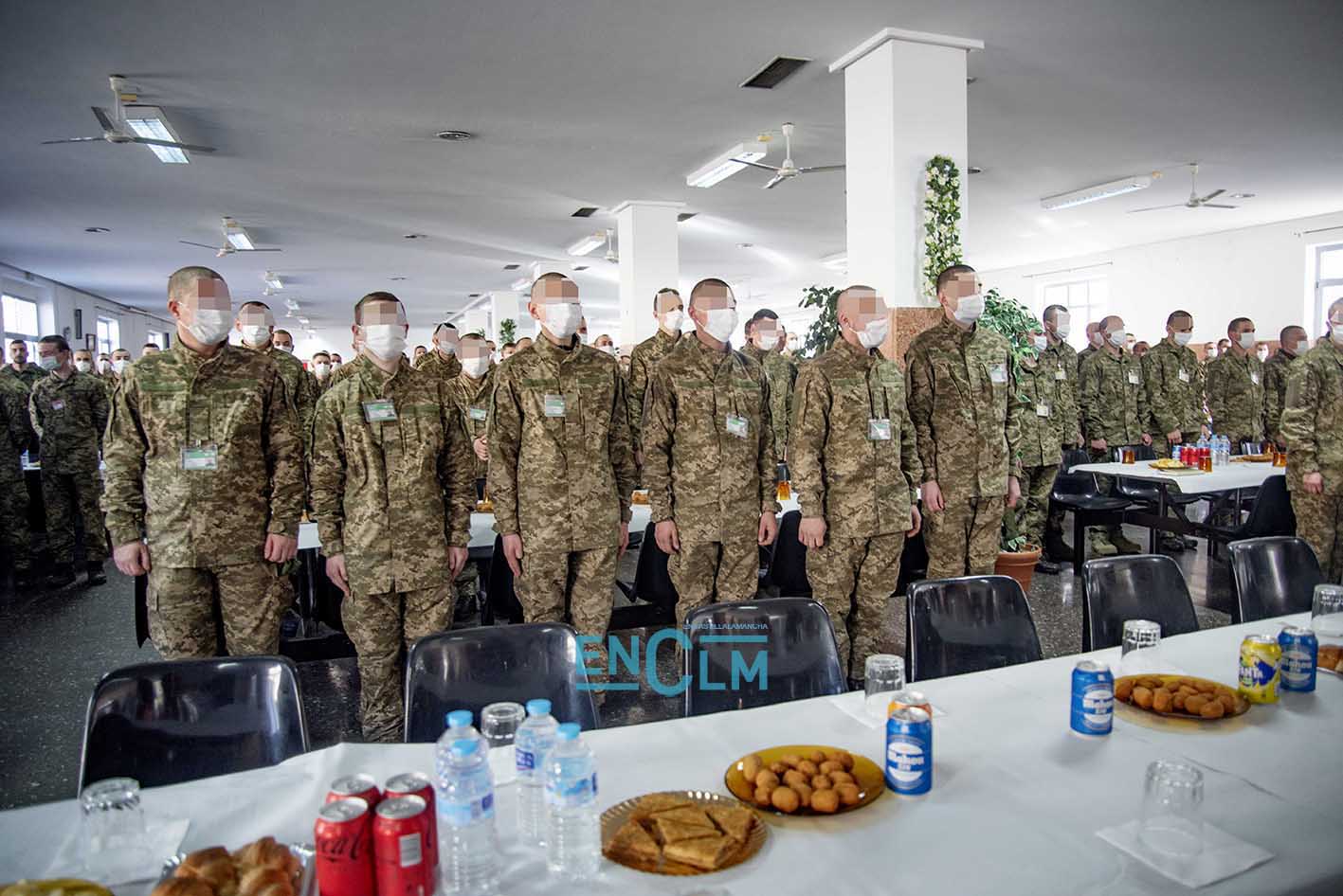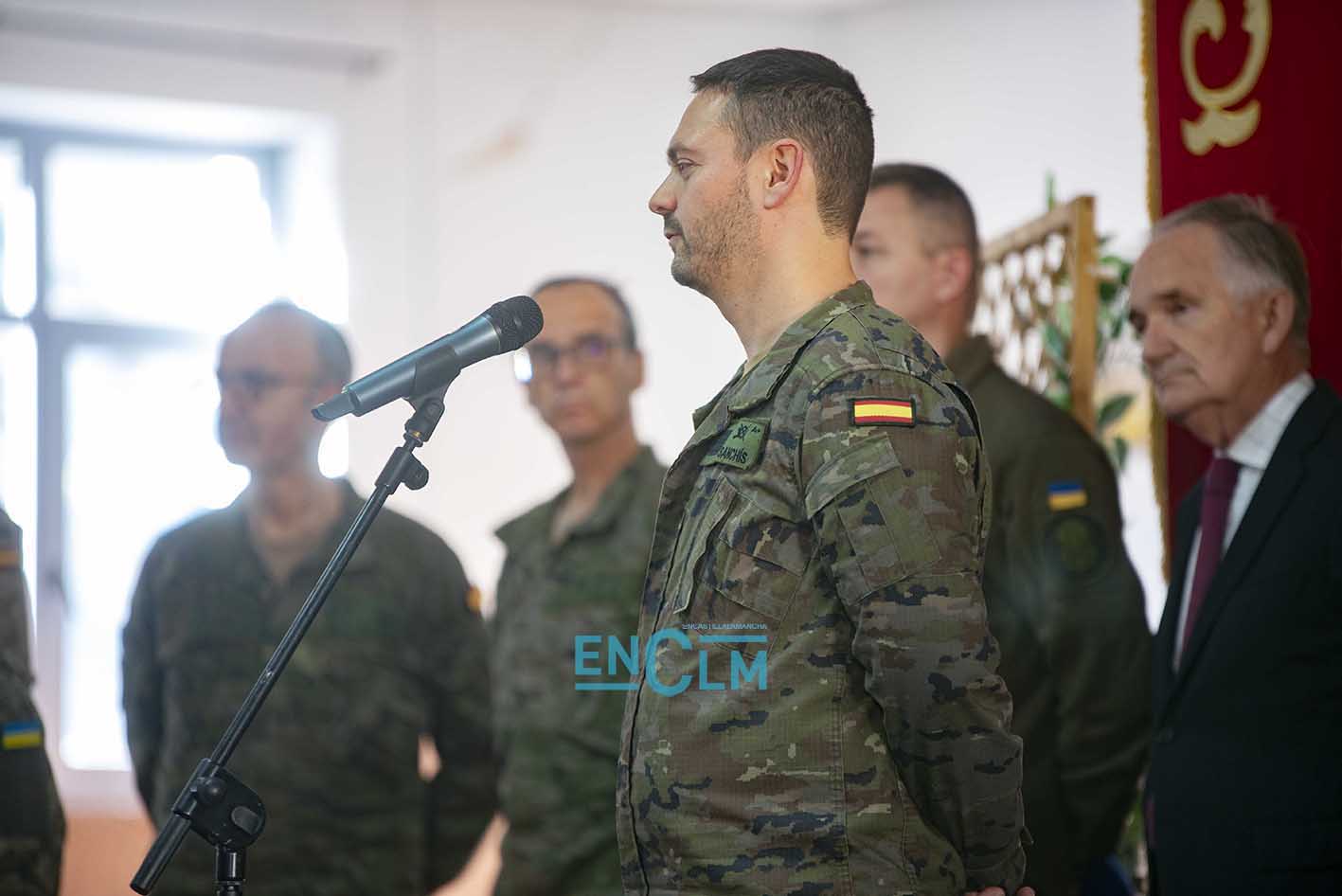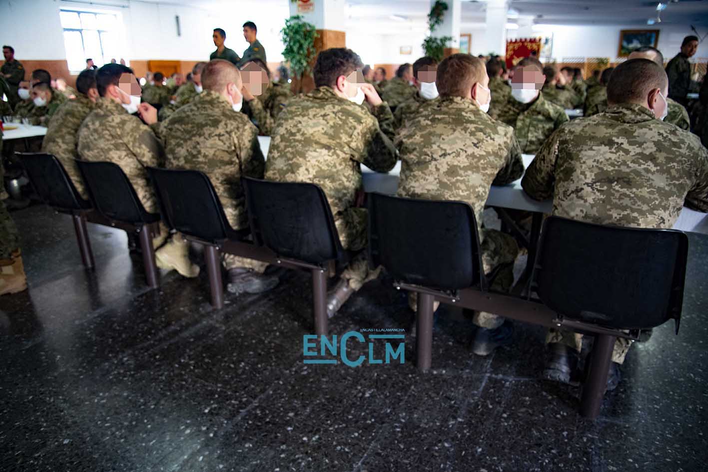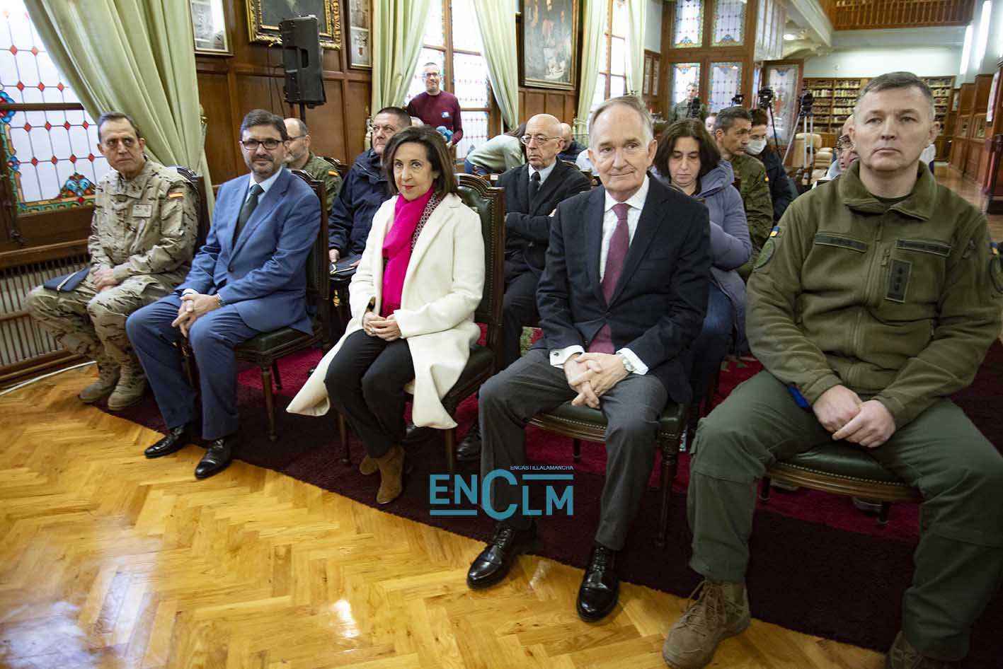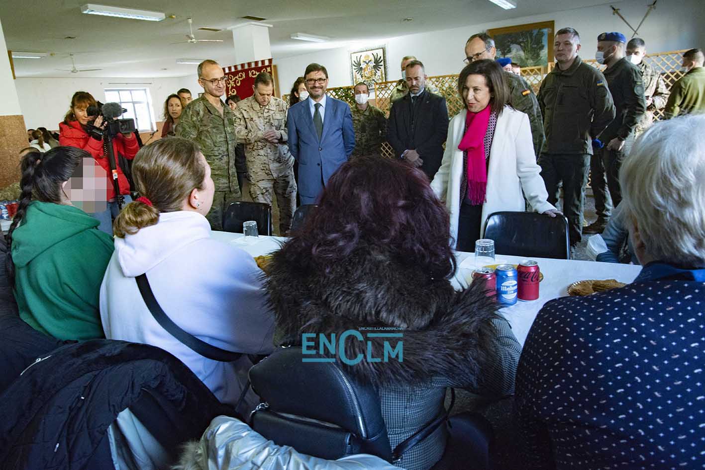 - Margarita Robles, ministra de Defensa, junto a una militar ucraniana en la Academia de Infantería de Toledo. Foto: Rebeca Arango.