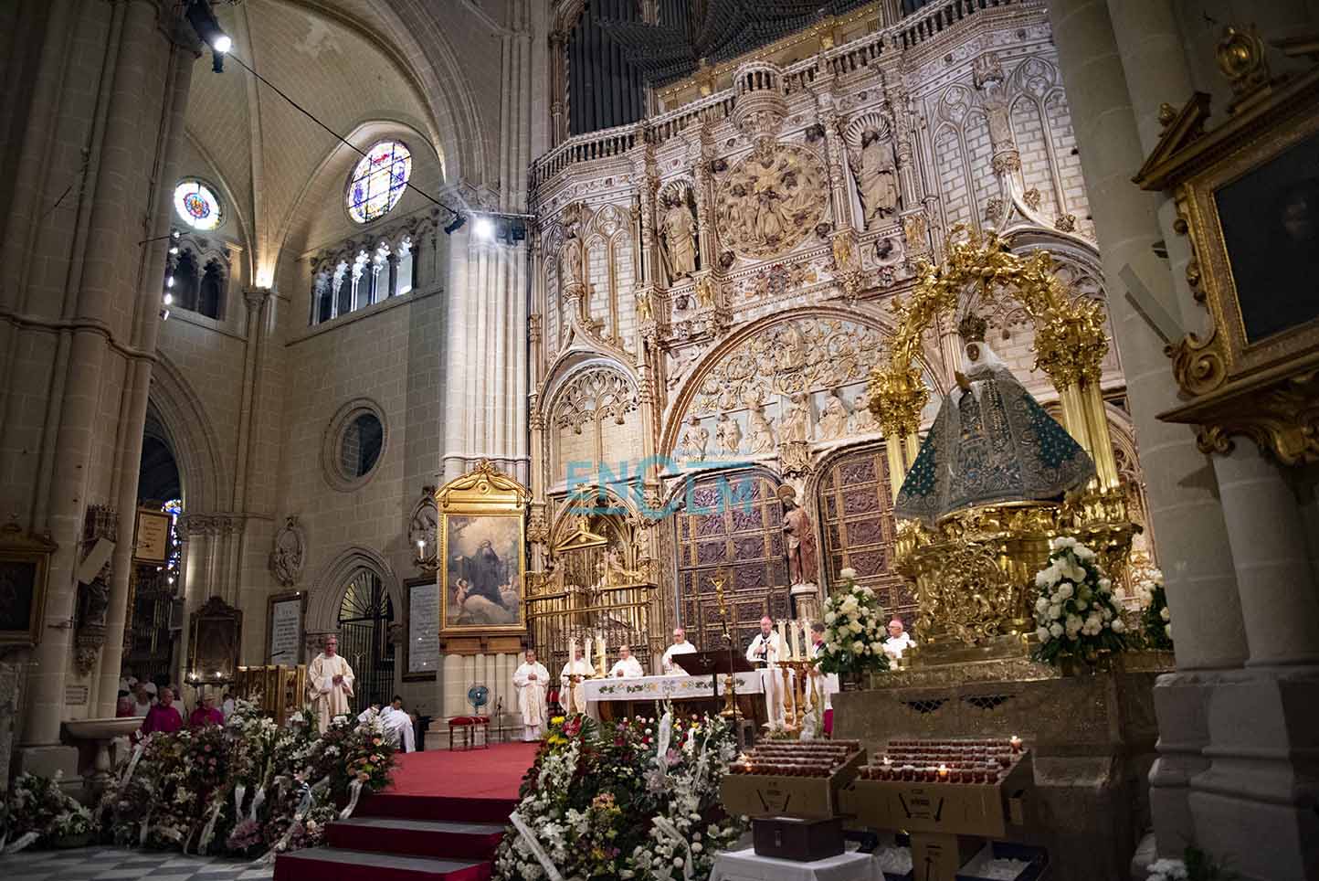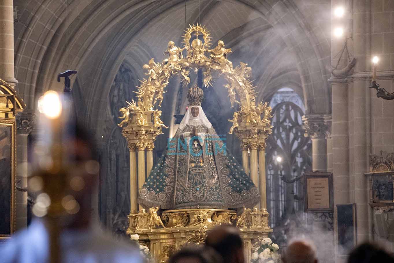 39 de 107Cientos de ciudadanos se acercaron a beber el agua de la virgen en la Catedral de Toledo. Debido a la pandemia, este año no había botijos públicos, por lo que algunos se los llevaron de casa.