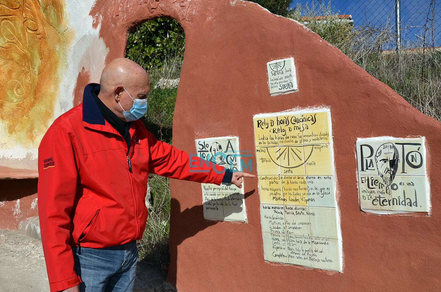 Javi Regacho junto al reloj de las horas canónicas.