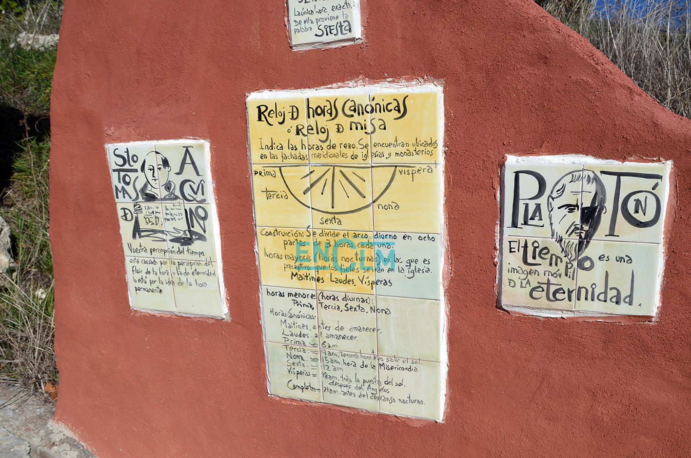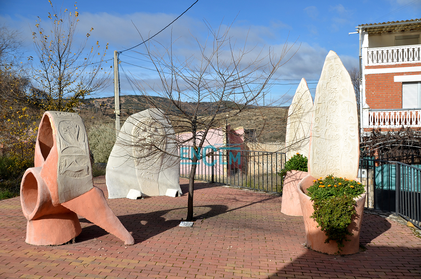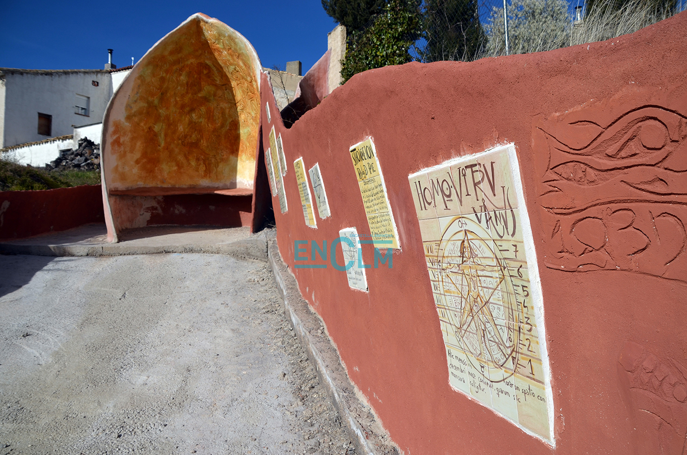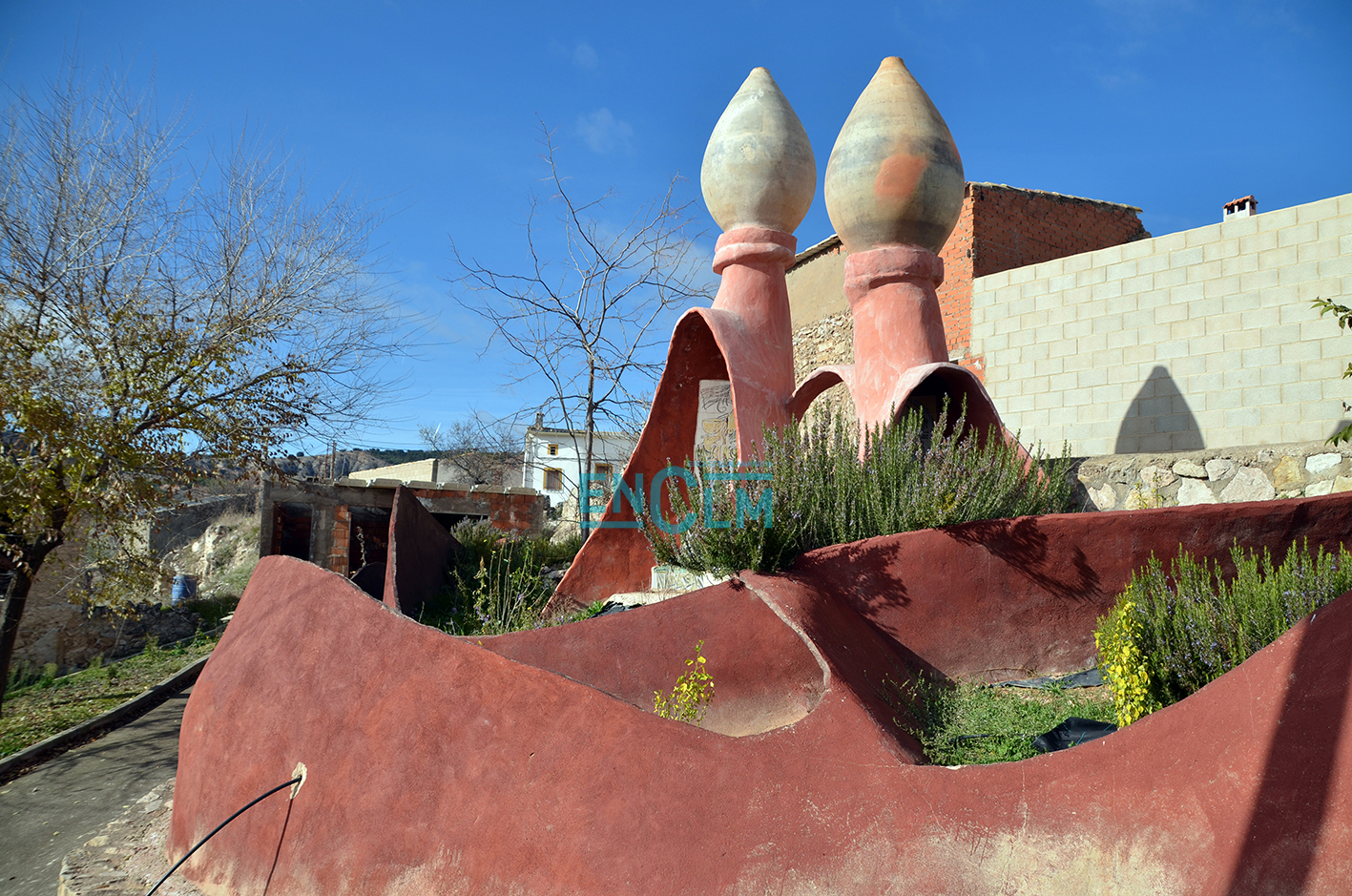 Él es Vicente García, originario del cercano municipio de Tinajas. No aspira a dejarlo todo bonito, sino a ser trasgresor, ¡y vaya si lo está consiguiendo! Sus obras de ferrocemento nos acompañan por todo el pueblo. Formas imposibles moldeadas con esta unión de cemento y el hierro que han dado vida a la periferia del pueblo, como en el paseo de los relojes, donde se halla un reloj del zodiaco, un reloj solar, y el reloj de las horas canónigas o de las horas de misa.