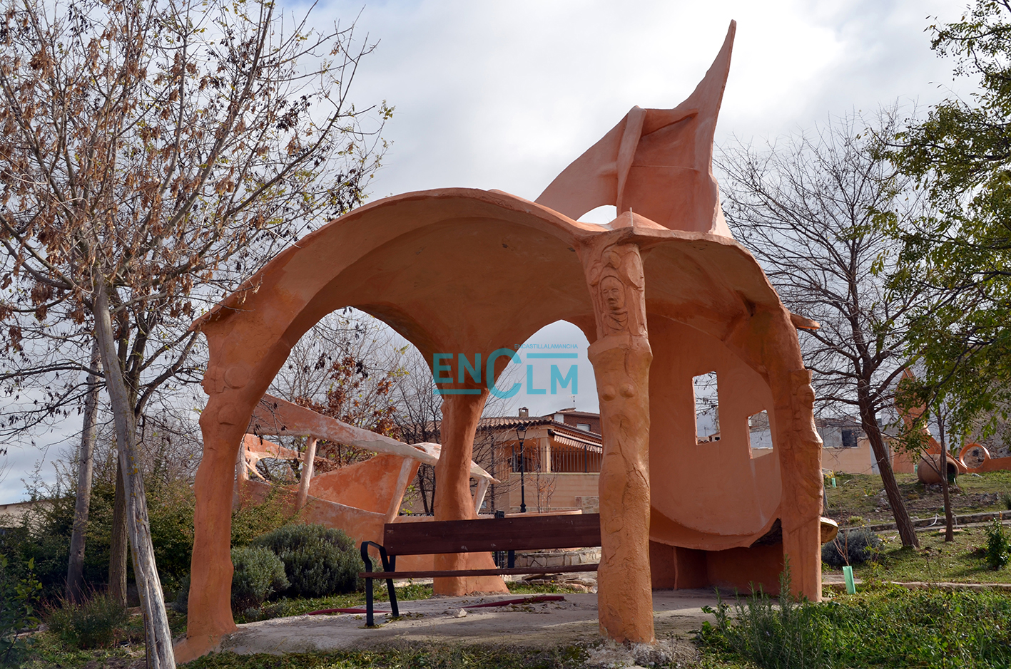 Ahora a las afueras del pueblo, Vicente Javi y José Luis están realizando otro ingenioso parque, con bancos con una orientación muy pensada y más esculturas de ferrocemento. Aunque todavía está en sus primeros paso, esta zona cercana al frontón contará con un río artificial y más de esta decoración tan característica de un pueblo que sigue ingeniando más y más proyectos.