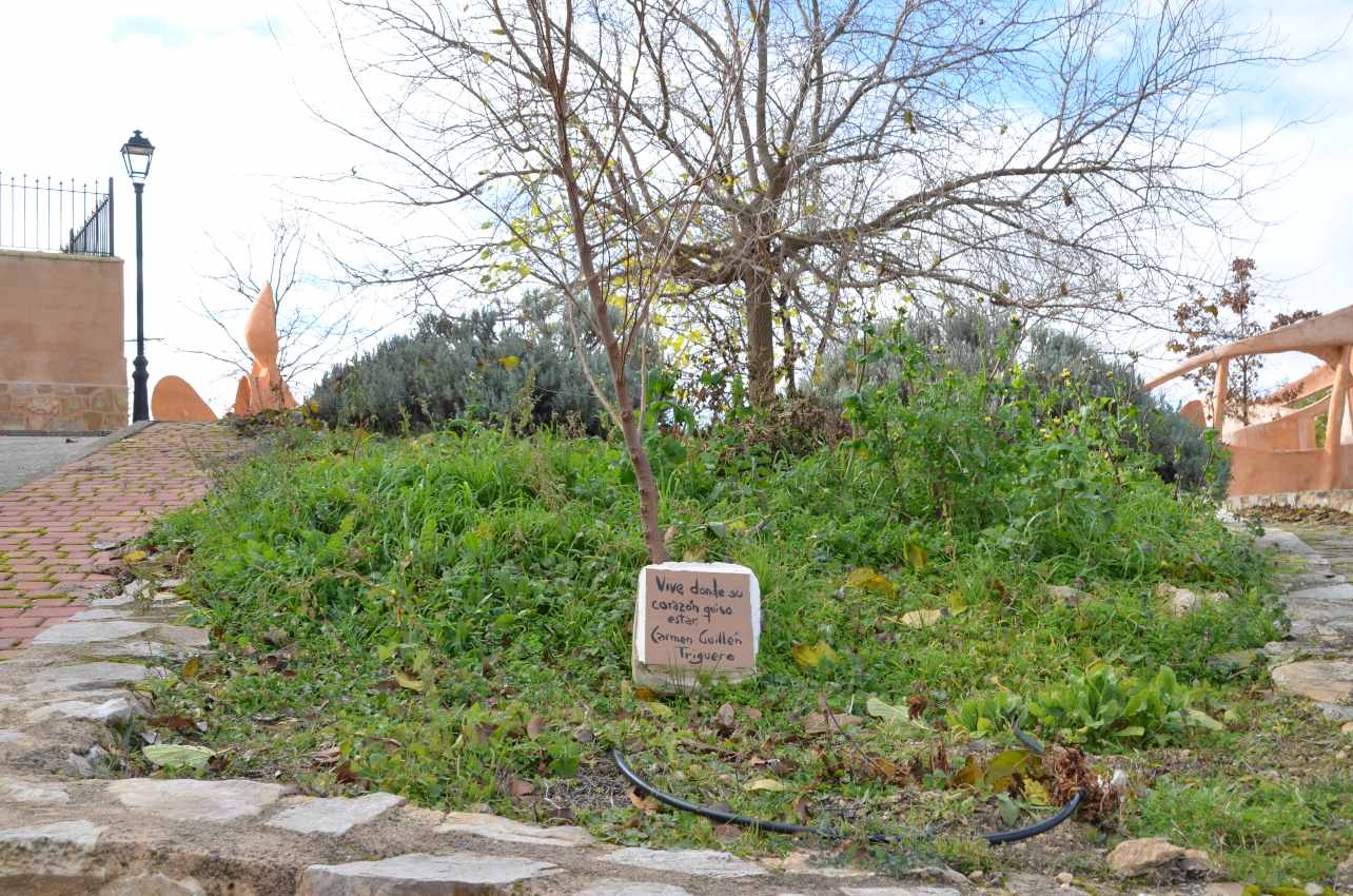 - Los familiares de una mujer oriunda de Olmeda. quisieron que sus restos permaneciesen en Olmeda y plantaron un árbol y pusieron una placa en su honor.