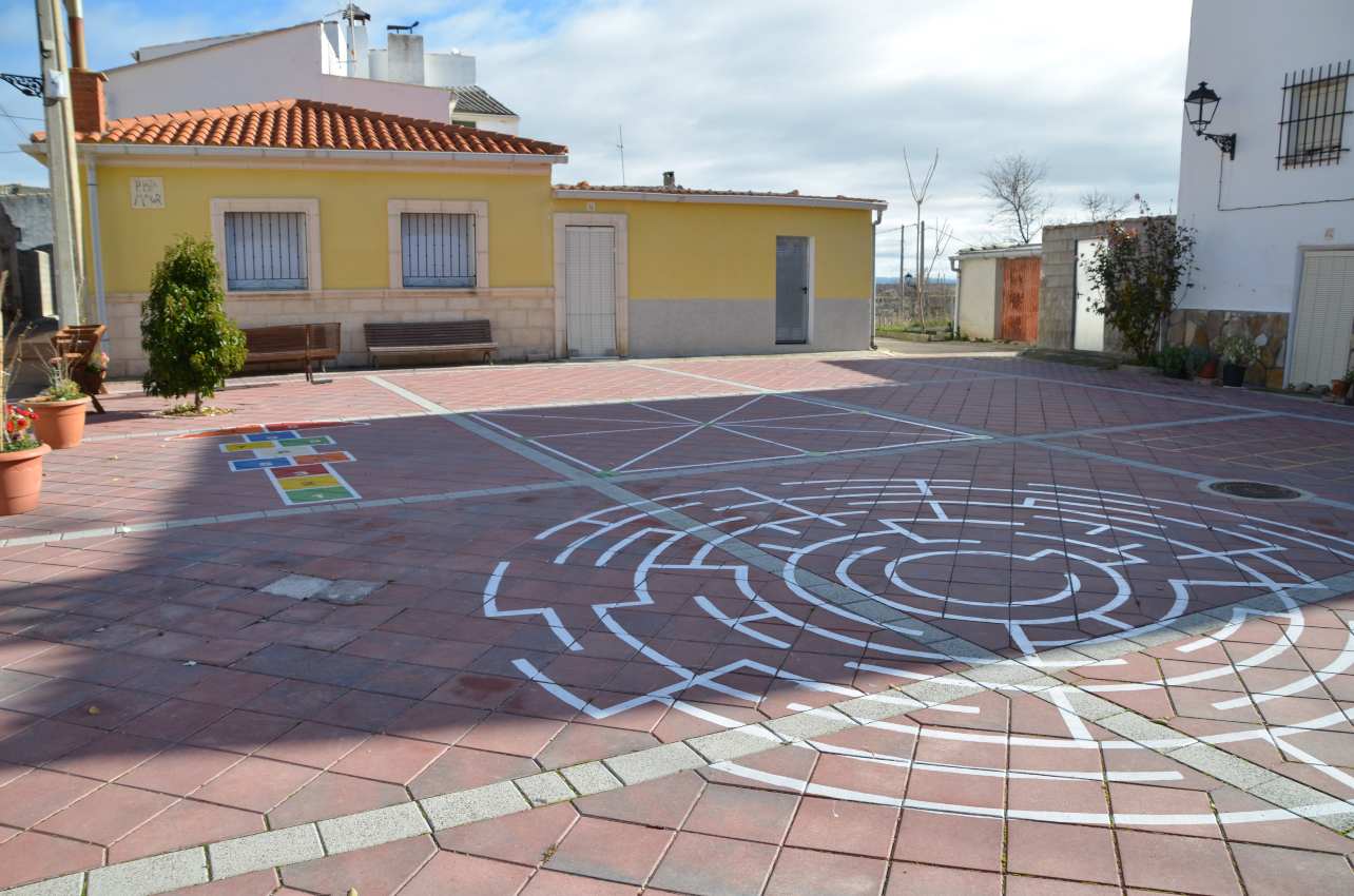 - A la plaza y a la iglesia, está esta plazoleta con juegos para niños. Con un laberinto, el juego de las tres en raya, la rayuela…