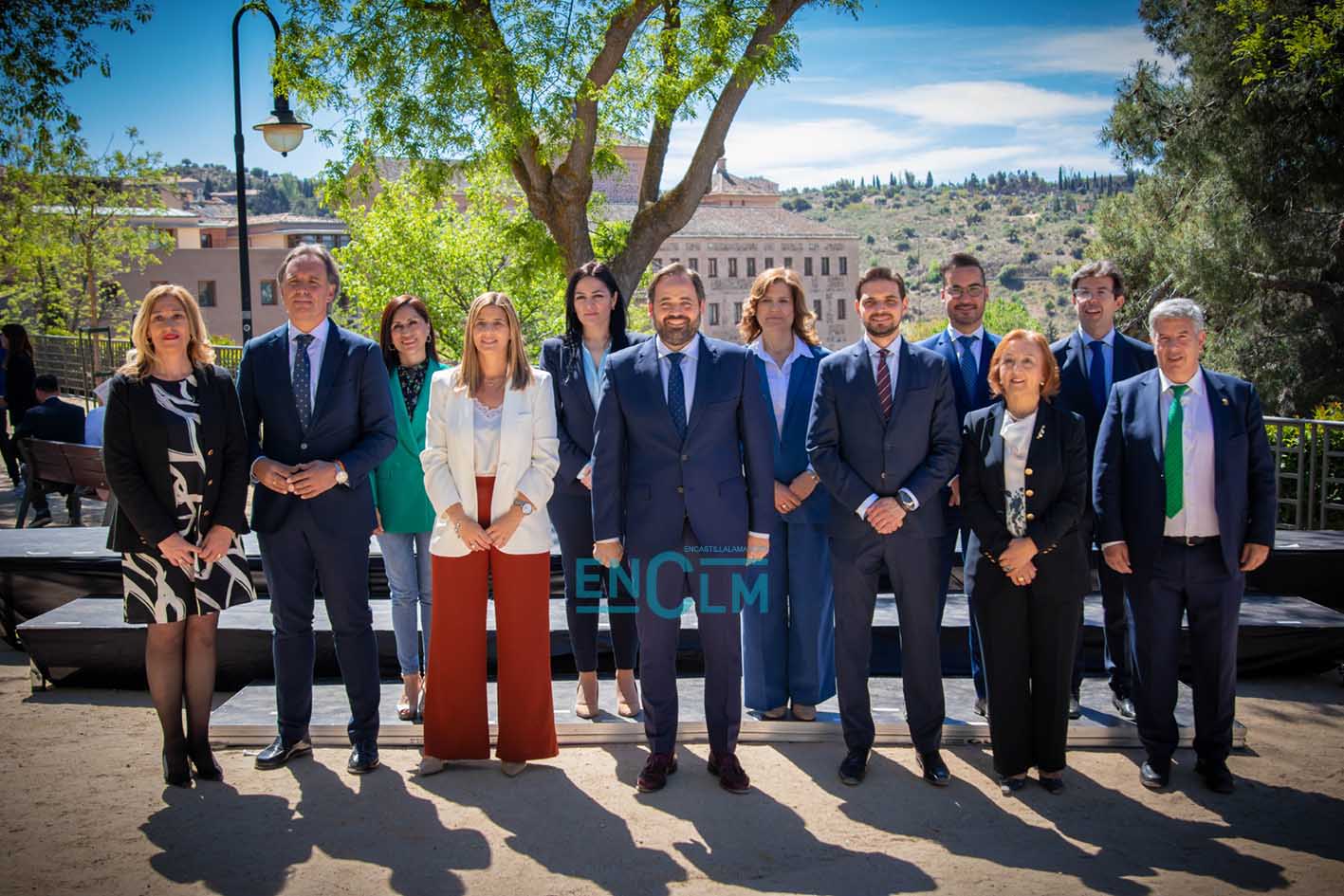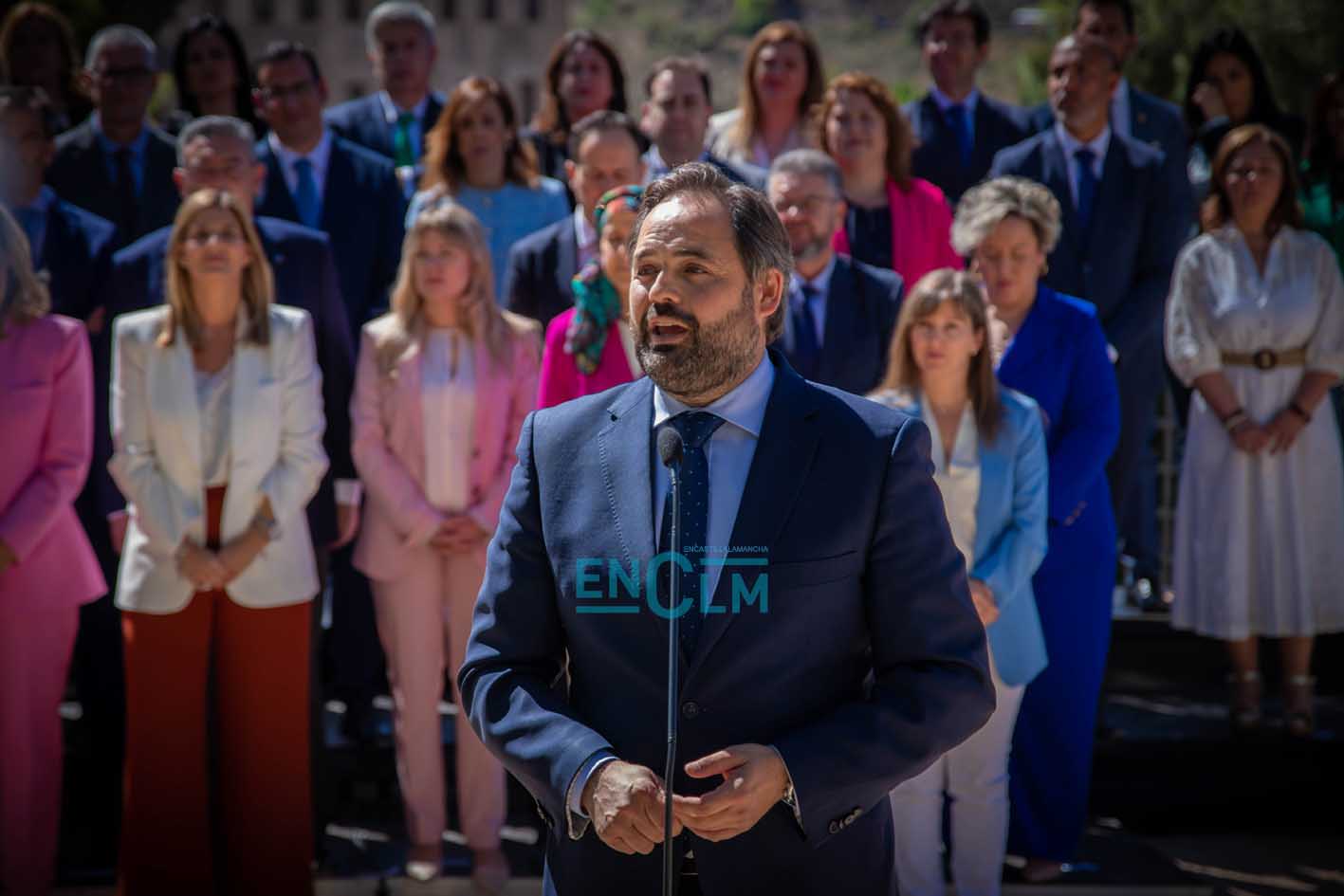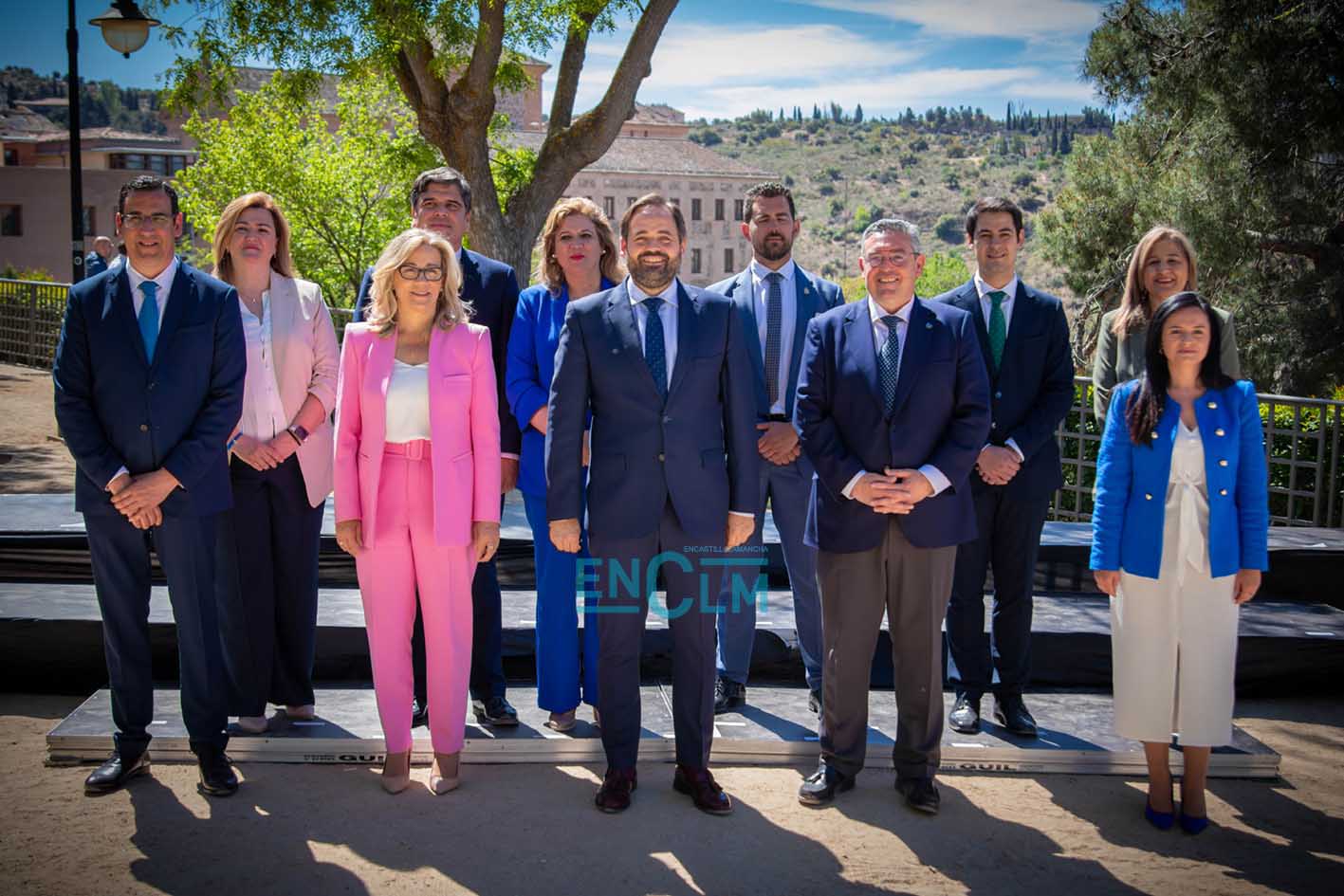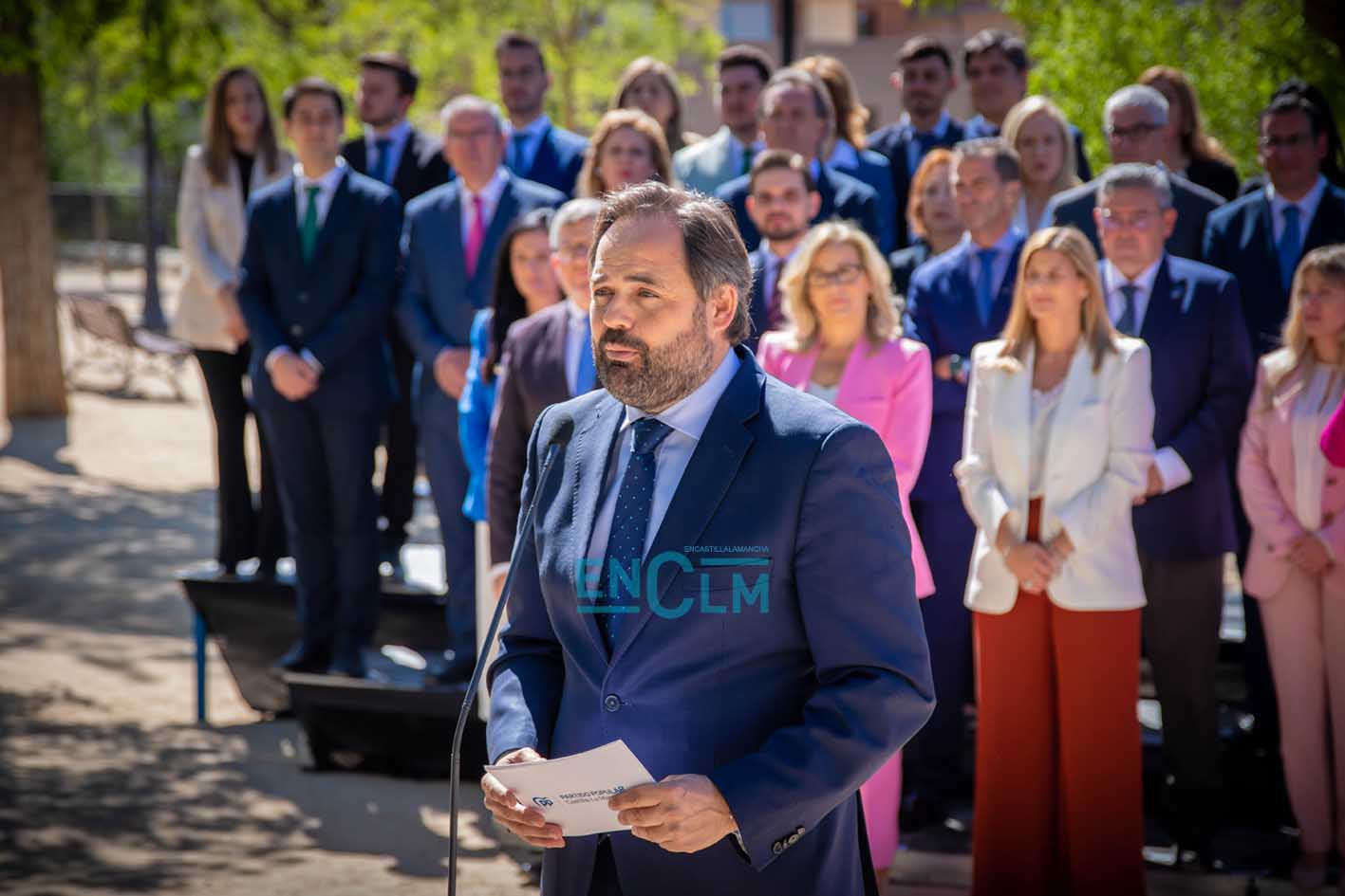 - El presidente del PP de CLM y candidato a la Presidencia de la Junta, Paco Núñez, delante de los integrantes de las listas de los «populares» para las autonómicas del 28 de mayo.