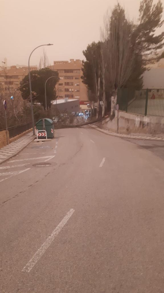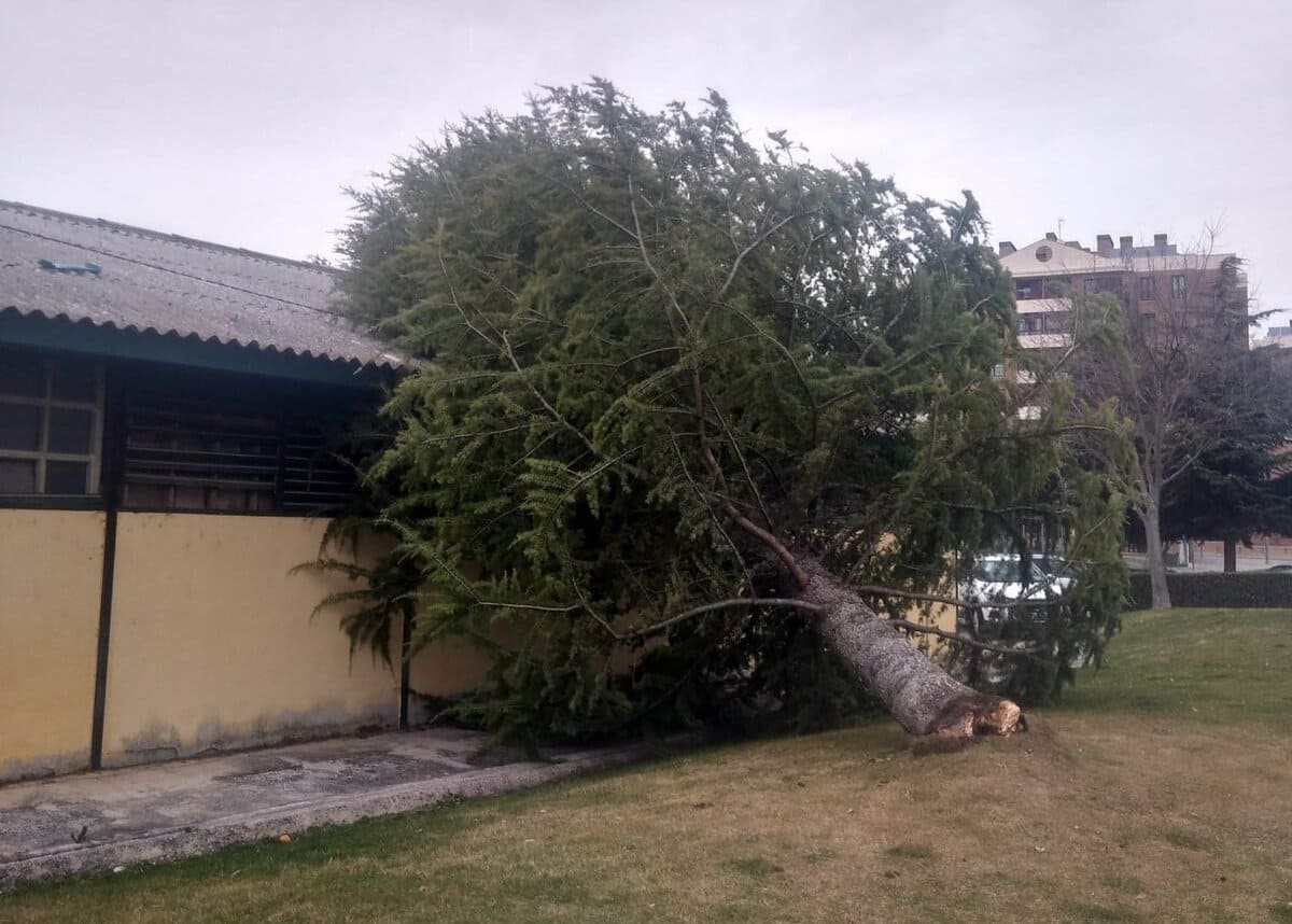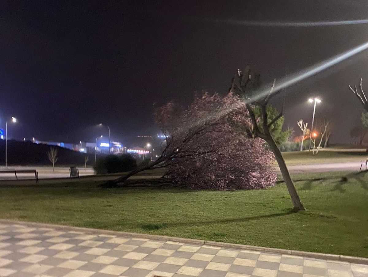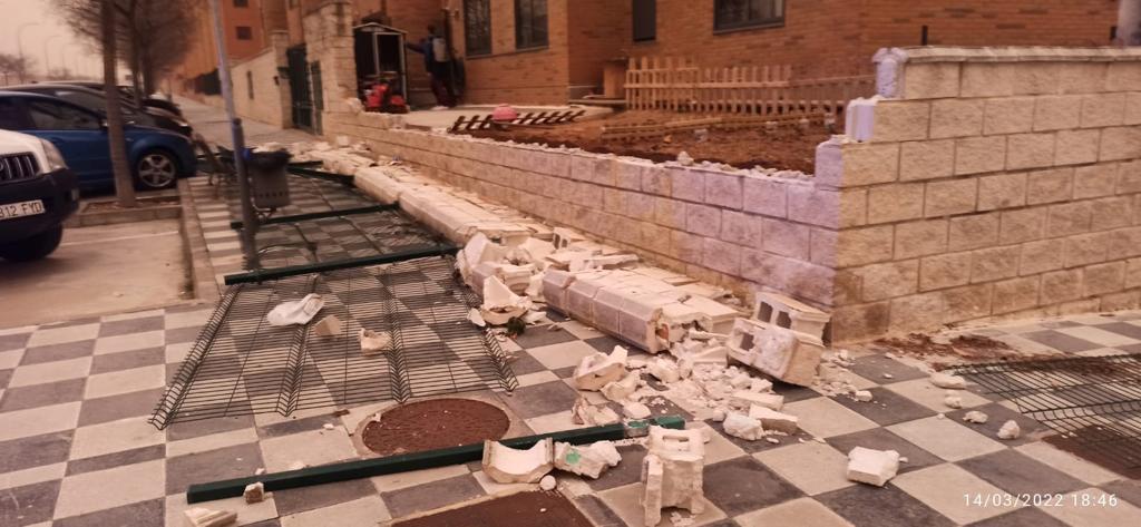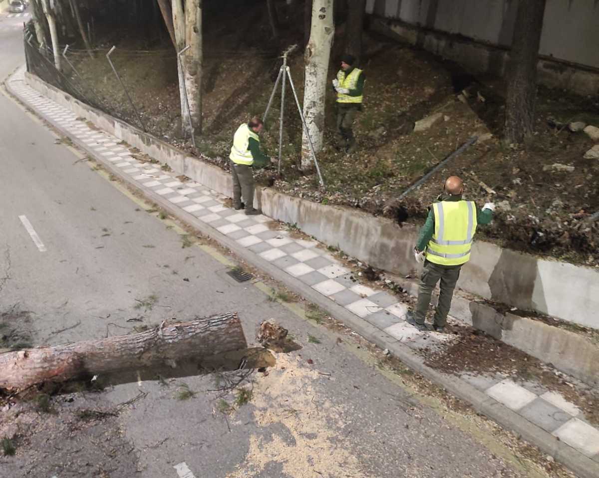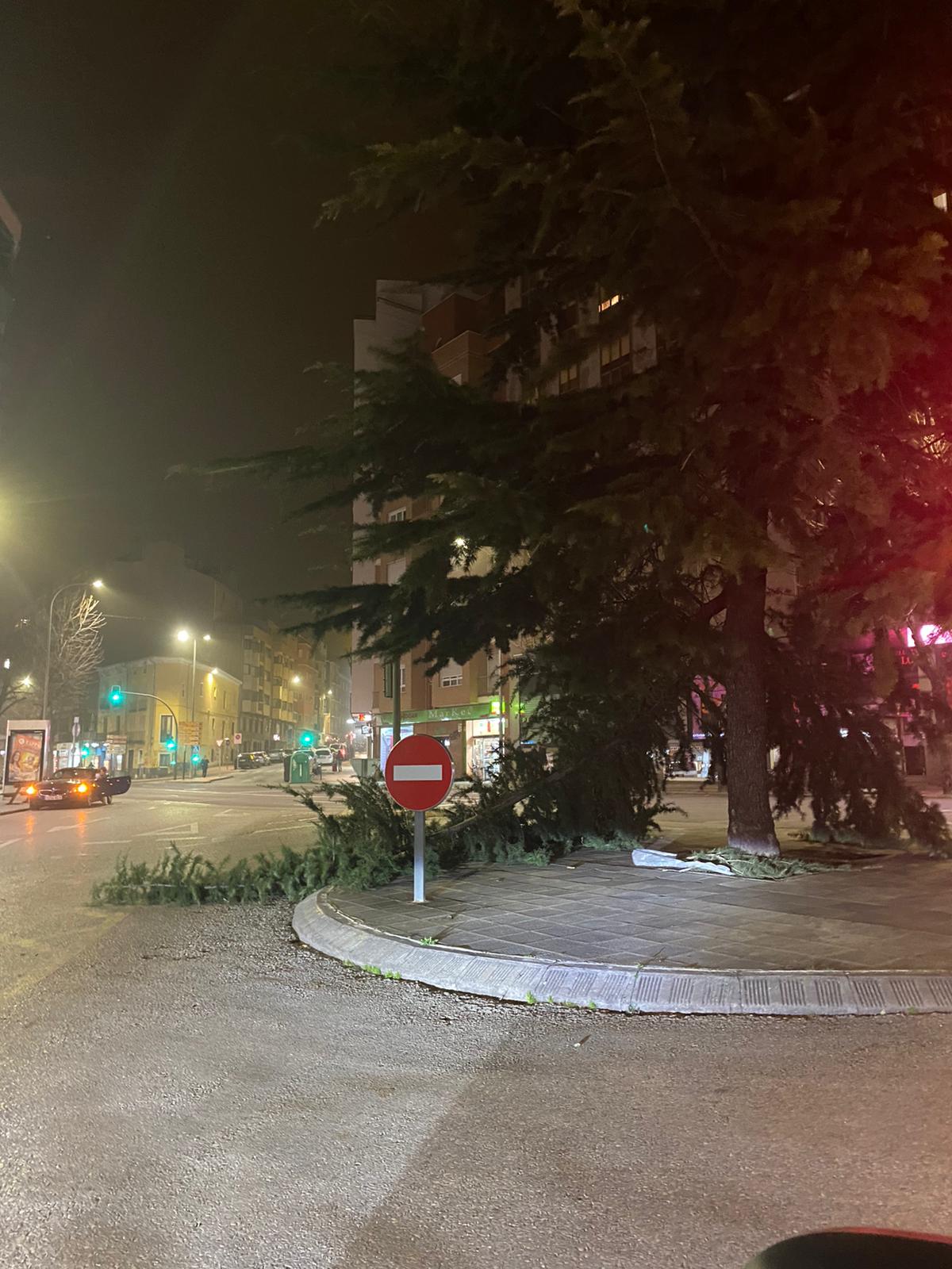 Las cornisas que se han desprendido en las calles Fermín Caballero y Retiro, mientras que se han registrado caídas de árboles frente al Parque de Bomberos, Parque de los Moralejos, Parque de Europa, Villa Román y los Tiradores.