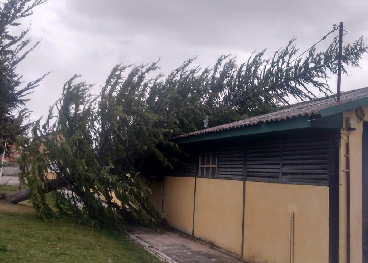 - Árbol caído encima de la nave del Parque de Bomberos.